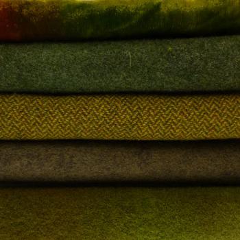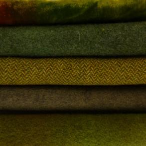Each pack has 5 pieces of fabric approximately 27x15cm or larger. Fabrics included wool fabric, upcycled wool blanketing some dyed, hand dyed wool felt, mixed wool/rayon felt and hand dyed silk/rayon velvet. Please be advised that shades may vary as some of the items are hand dyed.