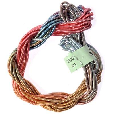 Viscose Gimp is a very round special yarn consisting of a cotton core wrapped with fine rayon thread to form a sheath. It has many uses including the wrapping of wooden tassel tops. It is available in an excellent colour range.
