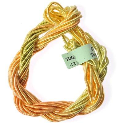 Viscose Gimp is a very round special yarn consisting of a cotton core wrapped with fine rayon thread to form a sheath. It has many uses including the wrapping of wooden tassel tops. It is available in an excellent colour range.