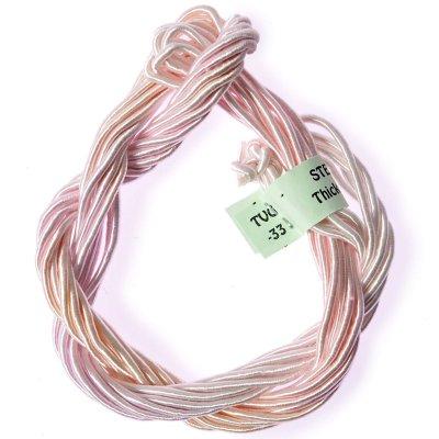 Viscose Gimp is a very round special yarn consisting of a cotton core wrapped with fine rayon thread to form a sheath. It has many uses including the wrapping of wooden tassel tops. It is available in an excellent colour range.