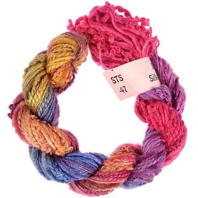 Total 20mThe Stef Francis Silk Texture Selection is a skein of 5 mixed silk yarns of different weights and textures, all dyed together in the same multi-colours.