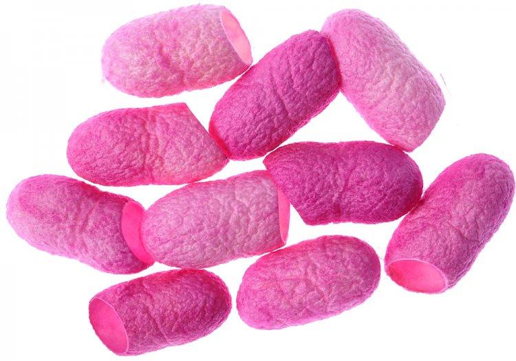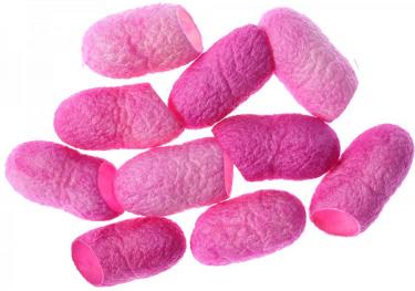 Silk cocoons as supplied by us have cut ends where the moth has been removed. They are hand-dyed by Stef Francis in a wide range of colours, and are fantastic for embellishment, 3 dimensional work, necklaces, etc