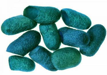 Silk cocoons as supplied by us have cut ends where the moth has been removed. They are hand-dyed by Stef Francis in a wide range of colours, and are fantastic for embellishment, 3 dimensional work, necklaces, etc