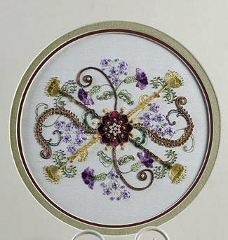 Irene JunkuhnAs seen on the cover of Embroidery and Cross Stitch Magazine Vol 19 No 10, this gorgeous design conjures up the Italin Rococo...excellent clear instructions and simple yet stunning techniques. The design measures 20cm x 22cm