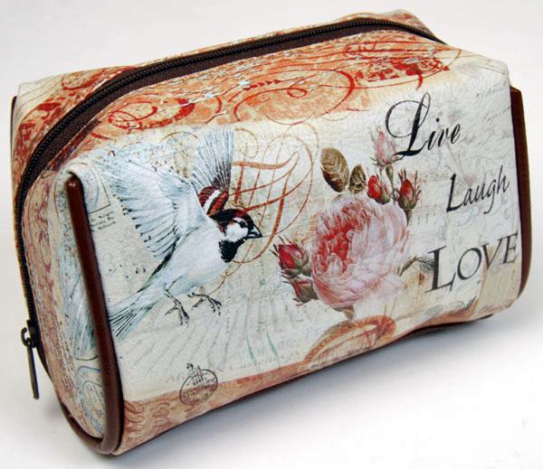 This Nouveau Chic cosmetic bag is PVC, lined with nylon and measures 15cm x 10cm x 8cm