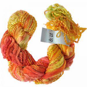 The included yarns are :- Sparkle chainette, 3600 Rayon, Cotton chenille,Viscose ribbon, and cotton/rayon slub or Perle 3