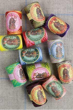 This thred is made of 3 strands of twisted mercerised cotton (the equivalent of DMC n° 80). The presentation in small cocoons each weighing 5 grammes (approx. 110 metres) makes it simple to use: the thread is pulled from the centre, so it doesn't knot. Each cocoon is labelled.