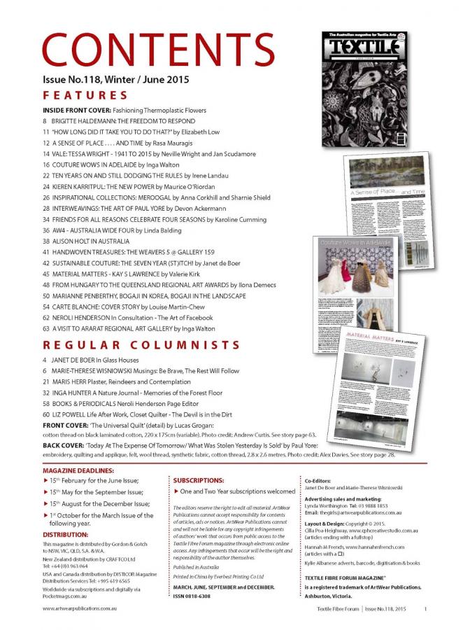 186gRegular columnists in this issue include JANET DE BOER, MARIE-THERESE WISNIOWSKI, MARIS HERR, INGA HUNTER, LIZ POWELL, NEROLI HENDERSON.