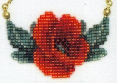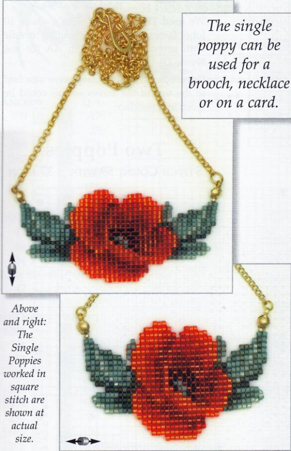 The single beaded poppy can be used for a brooch, necklace or on a card
