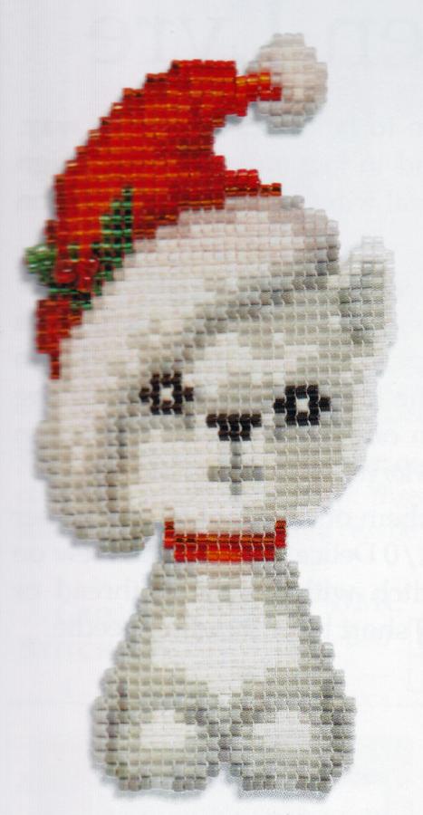 The Cat in a Hat has a stitch count of 33 wide x 56 high and it can be completed in beading or cross stitch. The beads used are Miyuki Delica DBR 11/0. The threads used are white nymo size D and the needles used are Beading needles blunt size 10. When ordering this design you will recieve Issu 93 of Jill Oxton's Cross Stitch and Bead Weaving which is full of Christmas charts and instructions.