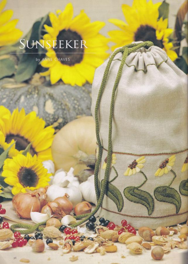 This design features in the book 'Irresistible Embroidered Bags' by Country Bumpkin. It features another 15 designs and when you order the Sunseeker pattern you will recieve this book.