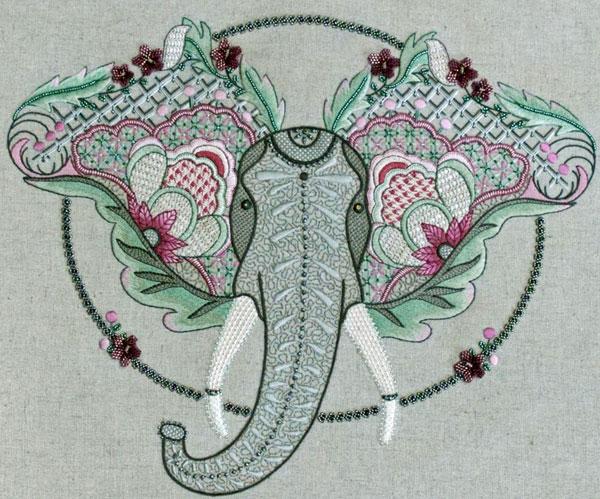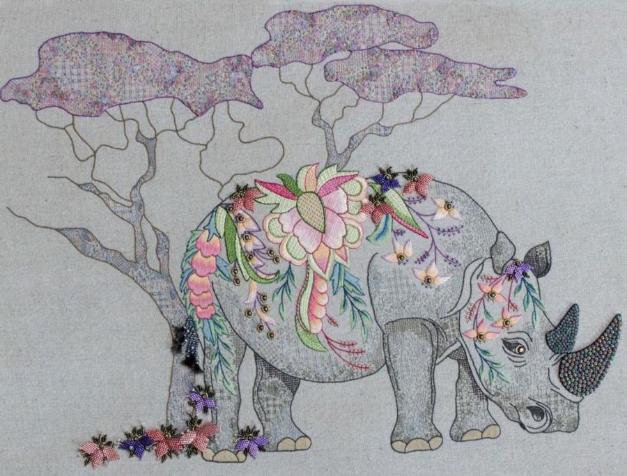 260 x 193 mmAfrican animals beautifully captured using Jacobean embroidery with fractal designs and three-dimensional elements.