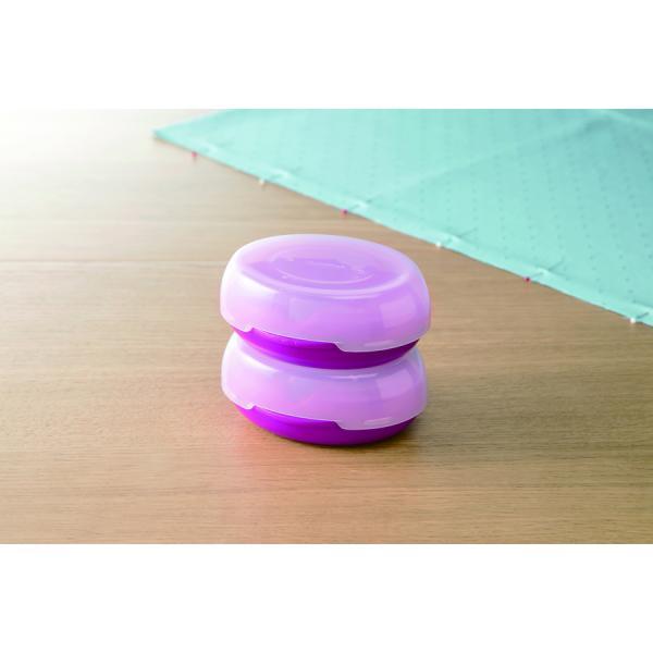 Gathers and stores pins safely, eliminating the need for a pin cushion. Allows for easy pick up and secures pins in one direction! Designed with a groove for easy pick up. Cover included for safe and easy storage.