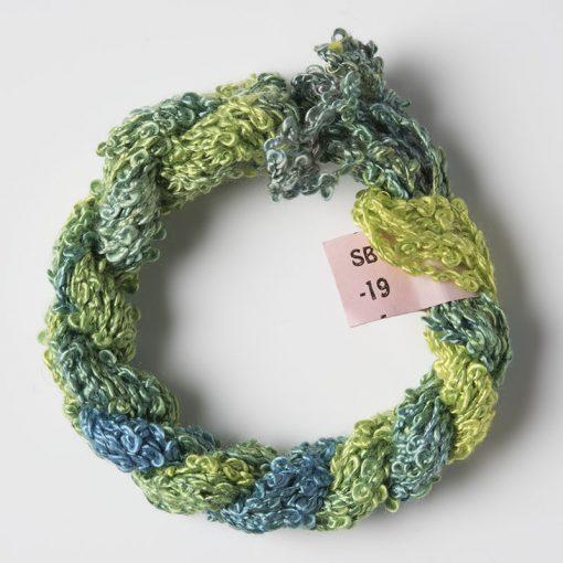 Stef Francis Silk Boucle is a fancy yarn and creates a creative appearance even when straight stitched. It is hand dyed, beautifully soft and each skein comes in an 8 metre length.