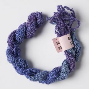 Stef Francis Silk Boucle is a fancy yarn and creates a creative appearance even when straight stitched. It is hand dyed, beautifully soft and each skein comes in an 8 metre length.