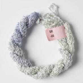 Stef Francis Silk Boucle is a fancy yarn and creates a creative appearance even when straight stitched. It is hand dyed, beautifully soft and each skein comes in an 8 metre length.