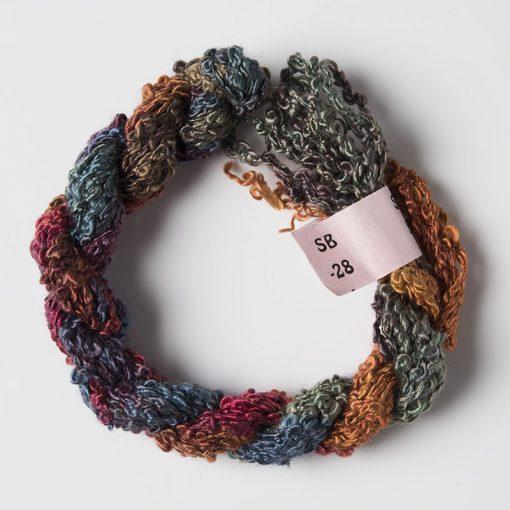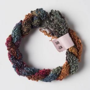 Stef Francis Silk Boucle is a fancy yarn and creates a creative appearance even when straight stitched. It is hand dyed, beautifully soft and each skein comes in an 8 metre length.