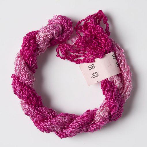 Stef Francis Silk Boucle is a fancy yarn and creates a creative appearance even when straight stitched. It is hand dyed, beautifully soft and each skein comes in an 8 metre length.