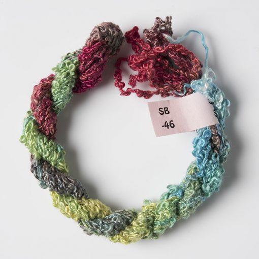 Stef Francis Silk Boucle is a fancy yarn and creates a creative appearance even when straight stitched. It is hand dyed, beautifully soft and each skein comes in an 8 metre length.