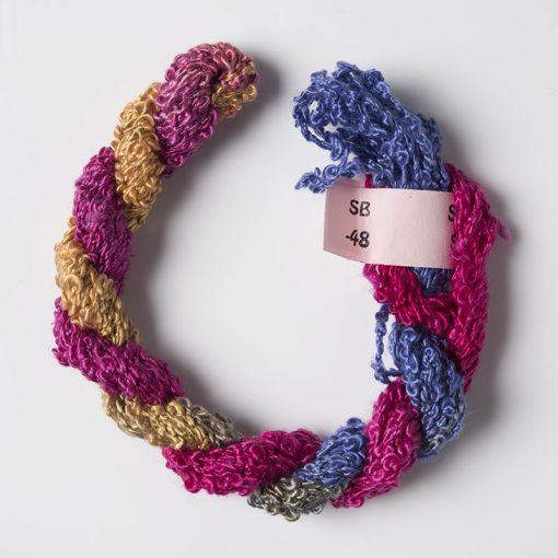 Stef Francis Silk Boucle is a fancy yarn and creates a creative appearance even when straight stitched. It is hand dyed, beautifully soft and each skein comes in an 8 metre length.