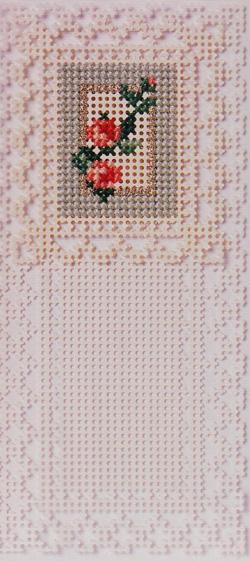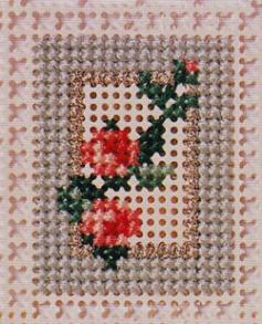 Rose Key Rings & Book Mark. The stitch count for the key rings is 17 wide x 21 high and for the book mark 35 wide x 80 high. The threads listed in the charts are both Anchor and DMC. This issue also features the following designs: