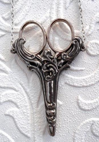 This heirloom quality chatelaine with scissors on a chain. 2 3/4 inch