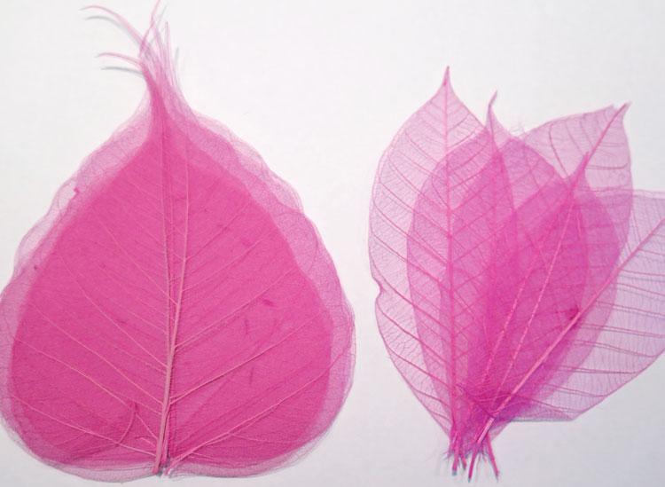 The pack contains 10 leaves, 5 each of two types of leaves (rubber and bodhi tree). Skeleton leaves are real leaves that are dried and treated so that the epidermis is removed, leaving behind just the “skeleton” of veins, then dyed. Whilst delicate in appearance, skeleton leaves are surprisingly sturdy and make wonderful additions to felting, fibre fusion, mixed media, scrapbooking, papermaking, art journaling and gift wrapping,