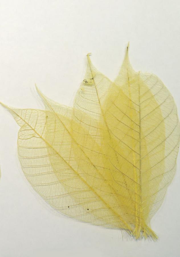 The pack contains 10 leaves, 5 each of two types of leaves (rubber and bodhi tree). Skeleton leaves are real leaves that are dried and treated so that the epidermis is removed, leaving behind just the “skeleton” of veins, then dyed. Whilst delicate in appearance, skeleton leaves are surprisingly sturdy and make wonderful additions to felting, fibre fusion, mixed media, scrapbooking, papermaking, art journaling and gift wrapping,